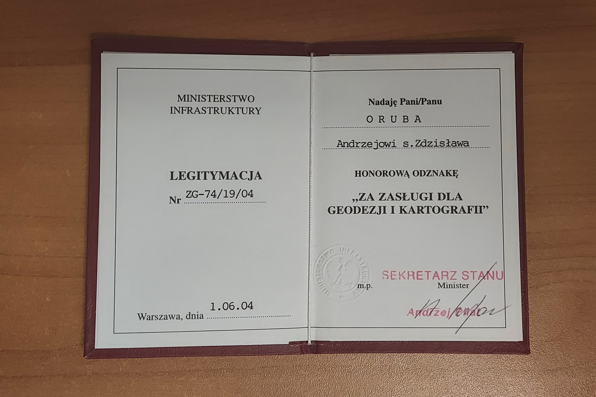 Aktualnie Rozporządzeniem Rady Ministrów z 30 kwietnia 2002 roku w sprawie ustanowienia odznaki honorowej „Za zasługi dla Geodezji i Kartografii”, ustalenia jej wzoru, zasad i trybu nadawania, a także noszenia ustanowiono nowy wzór oraz tryb przyznawania tego odznaczenia honorowego